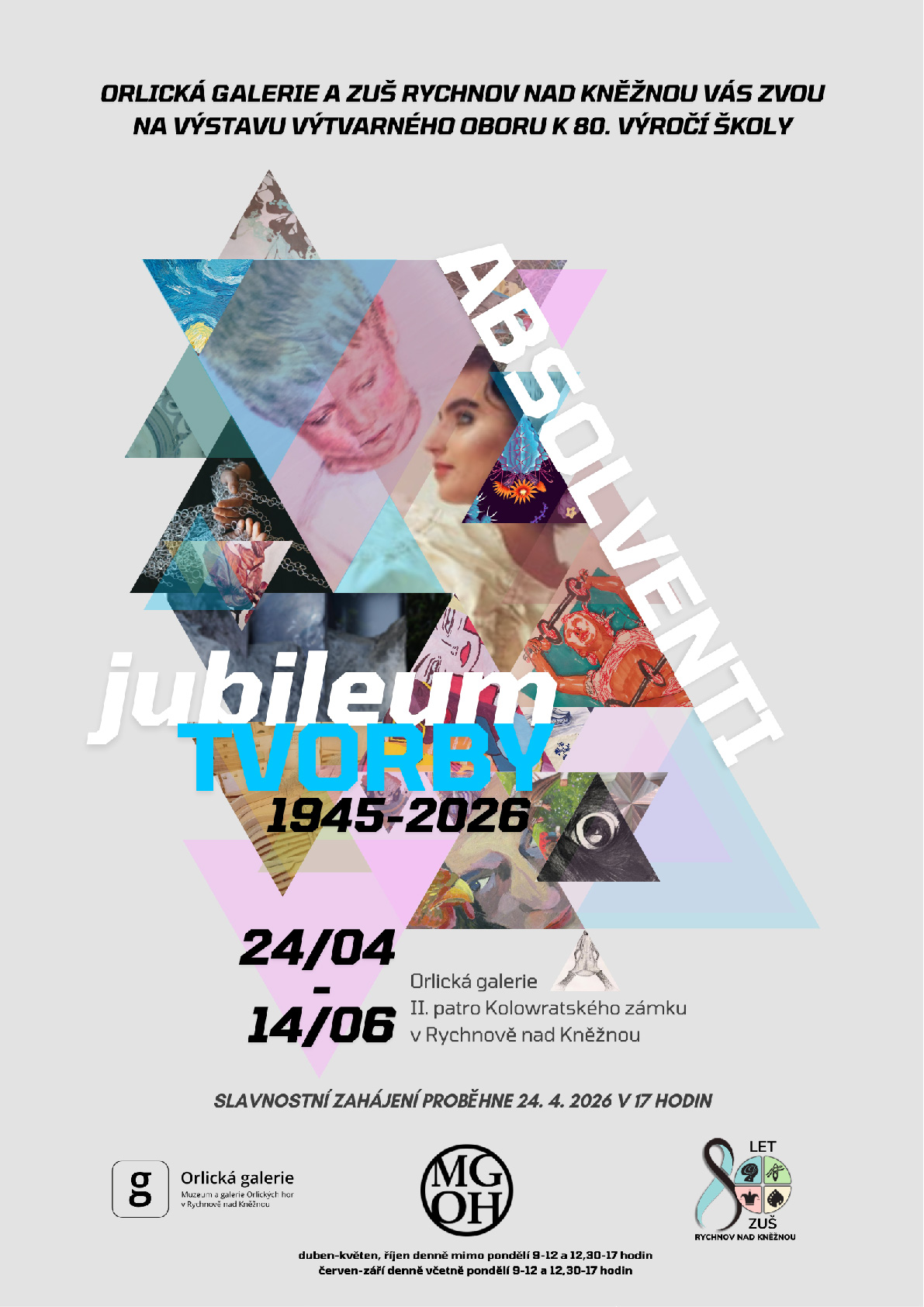 Ohlédnutí za 80. lety existence rychnovské Základní umělecké školy (dříve LŠU) prostřednictvím děl úspěšných absolventů výtvarného oboru. Skupinová výstava představí díla malířská, grafická i trojrozměrná.